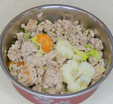 ** You are not required to make your puppy homemade food. If you want to for a treat, that is completely up to you. This is not a balance diet and should not be used for the pup’s primary source of nourishment. Use kibble for a balance diet. To do this, you will want to use white or brown rice, mixed veggies (no pea and/or lintel), and meat (or canned dog food in gravy). I change the meal every feeding. The only item that never changes is the rice.